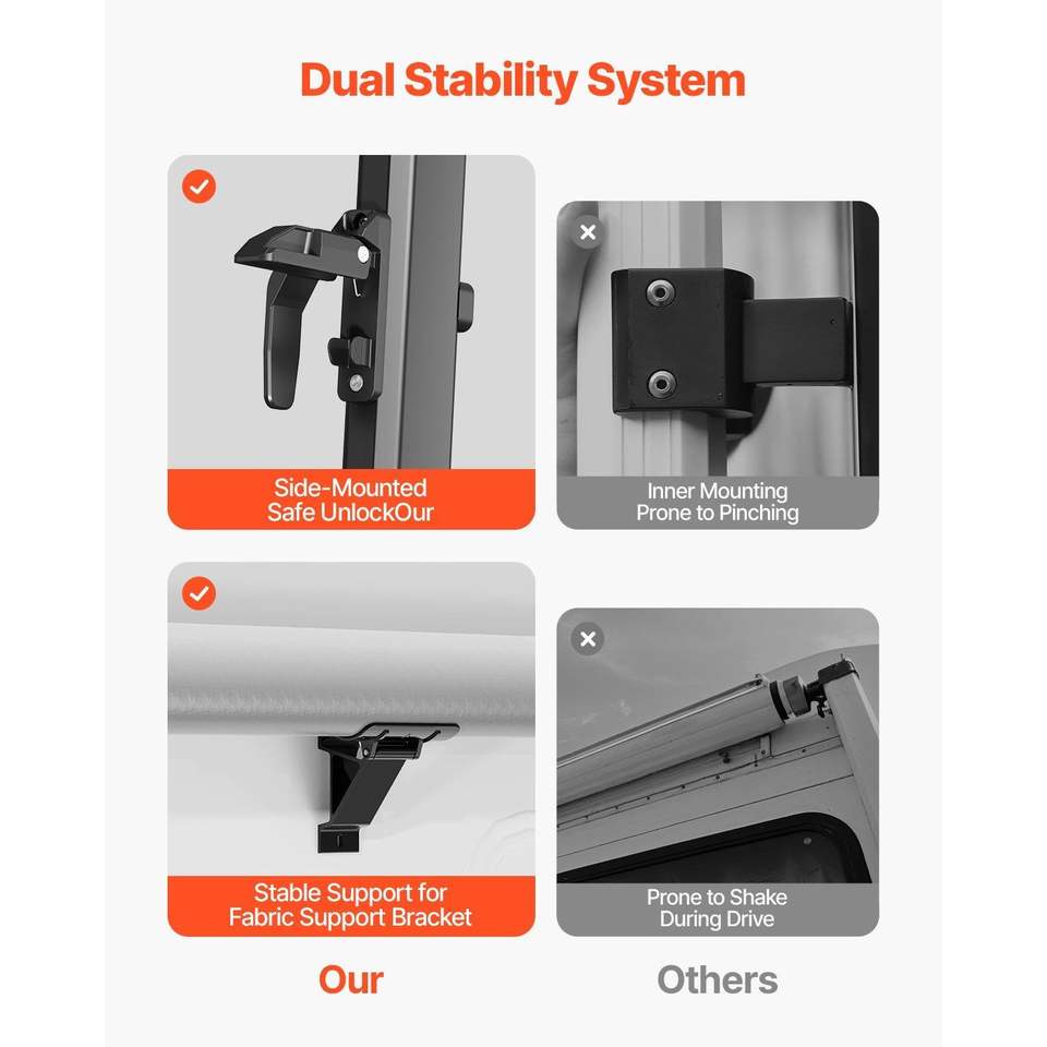 14\" Retractable Aluminum Alloy Frame Manual RV Awning Kit Fit Most RVs Black Outdoor Trailer Awning RV Exterior Accessories