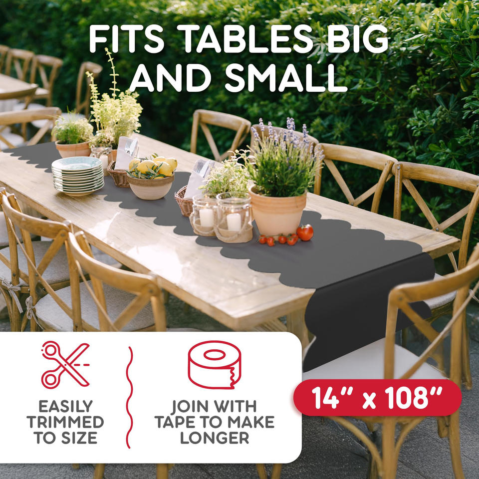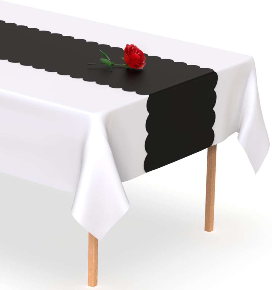 14 X 108 Inch Disposable Scallop Table Runners Black Plastic for Birthday Banquet Party Event Decoration Premium Quality Runners