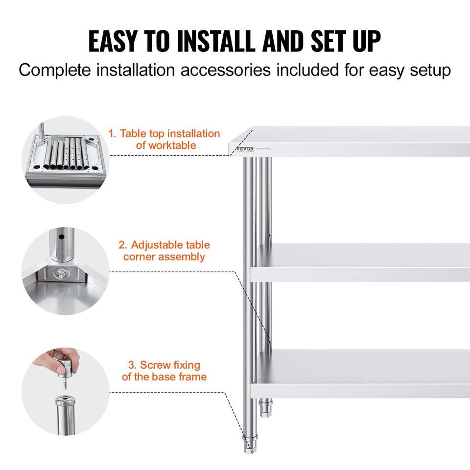 14 X 48 X 34 Inch Stainless Steel Food Prep Table Commercial Kitchen Worktable 2 Adjustable Undershelf Heavy Duty Metal