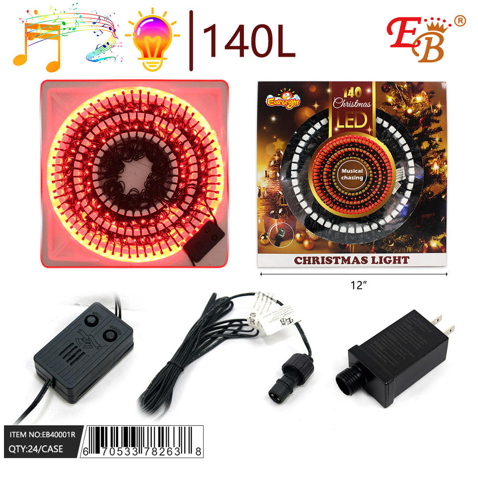 140 LED rosso luci di natale con musica 24PC/CS