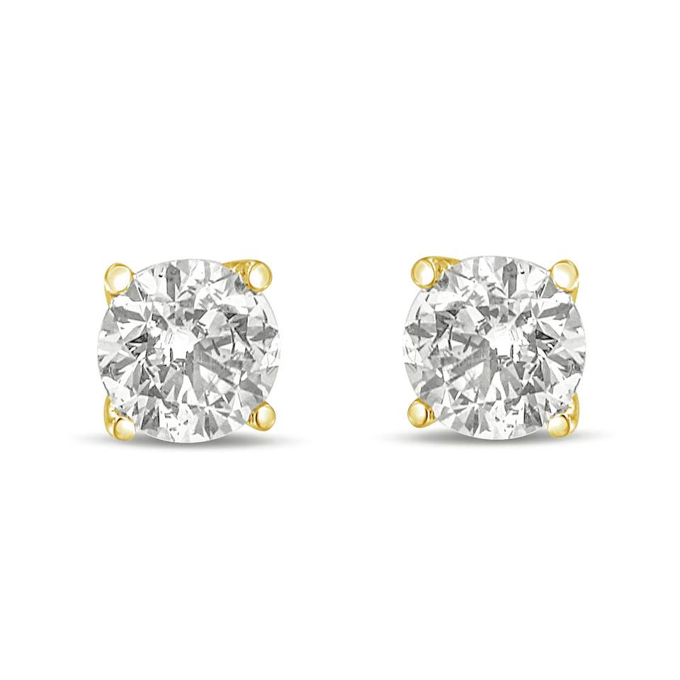 Orecchini a lobo classici solitari in oro 14K con diamante bianco/giallo da 1/2 carato taglio brillante, coltivato in laboratorio, design a cerchio raffinato