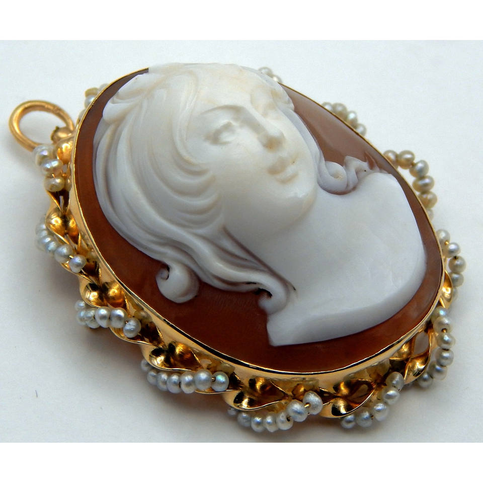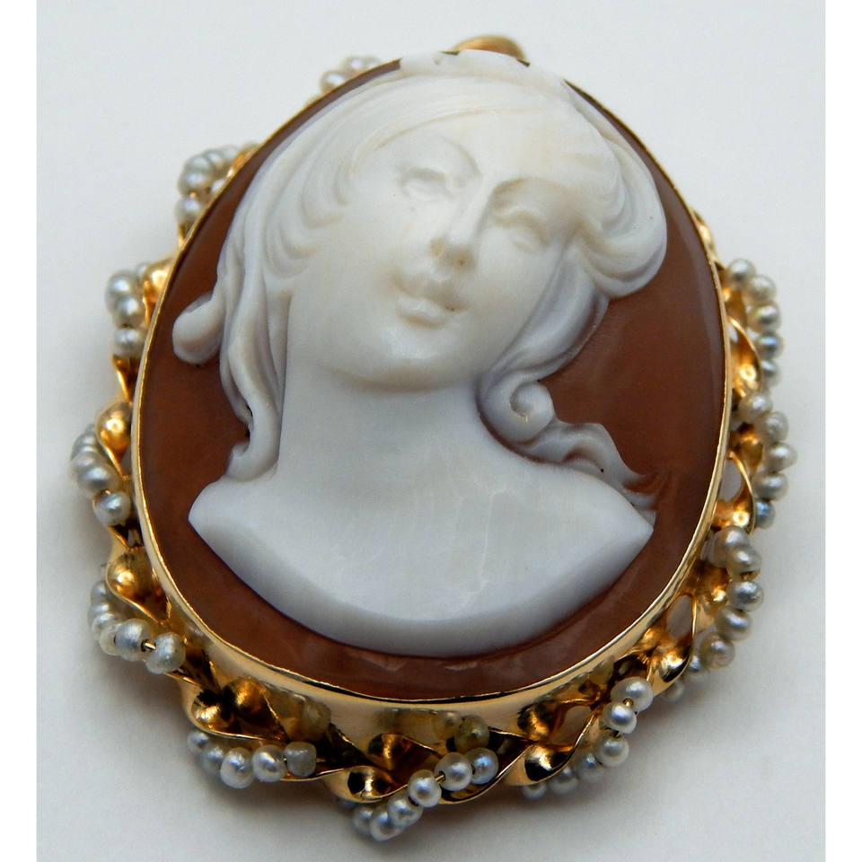 Spilla/ciondolo cammeo in oro 14K con perle di semi