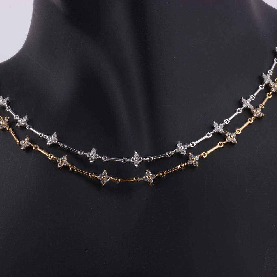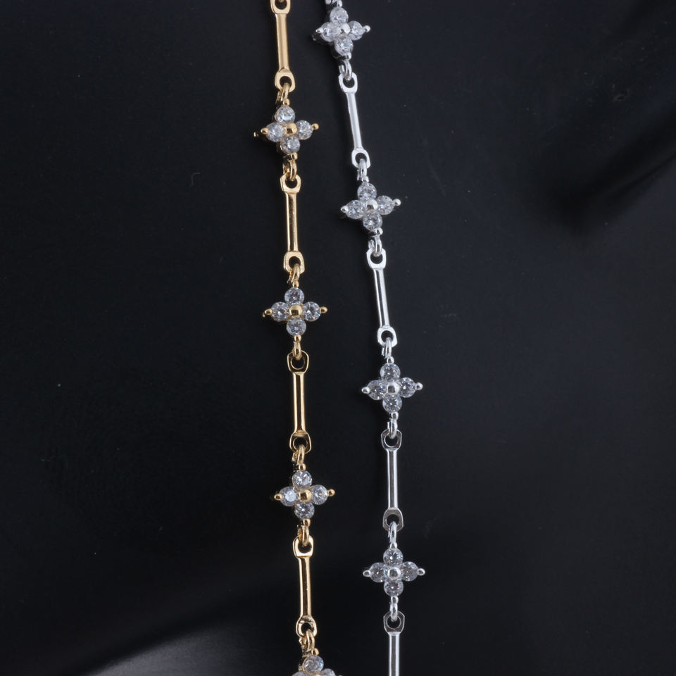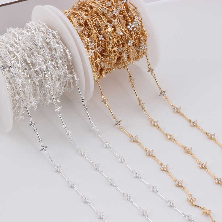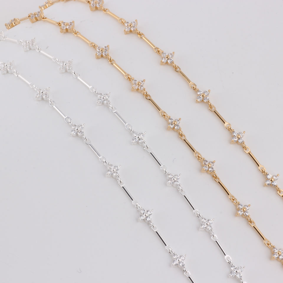 Catena a maglie e a barra in oro 14K/S925 argento con zirconi a trifoglio per la creazione di gioielli permanenti, accessori per collane e bracciali