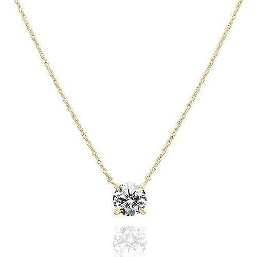 Collana Girocollo Delicata con Ciondolo in Zirconia Cubica da 1,5 Carati (7,3mm) Placcata in Oro 14K per Donne
