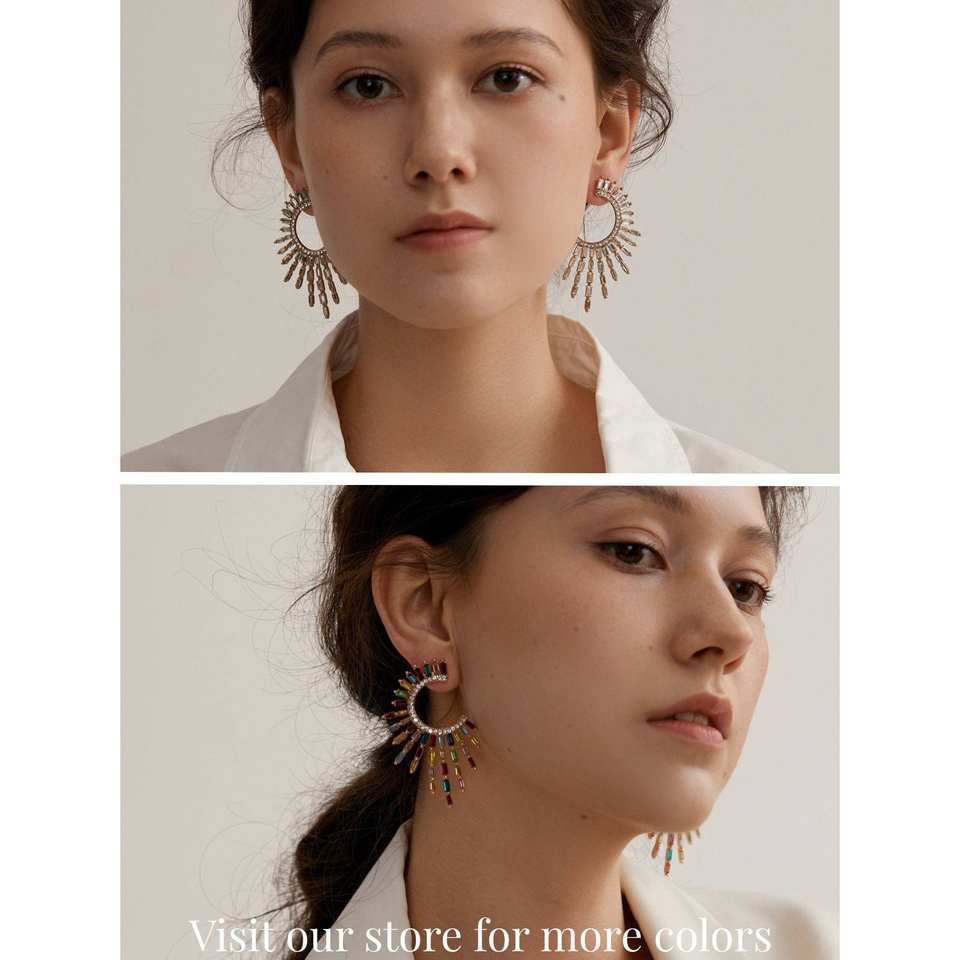 Orecchini a perno massicci placcati oro 14K con design astratto geometrico a raggi di sole color champagne, eleganti e alla moda