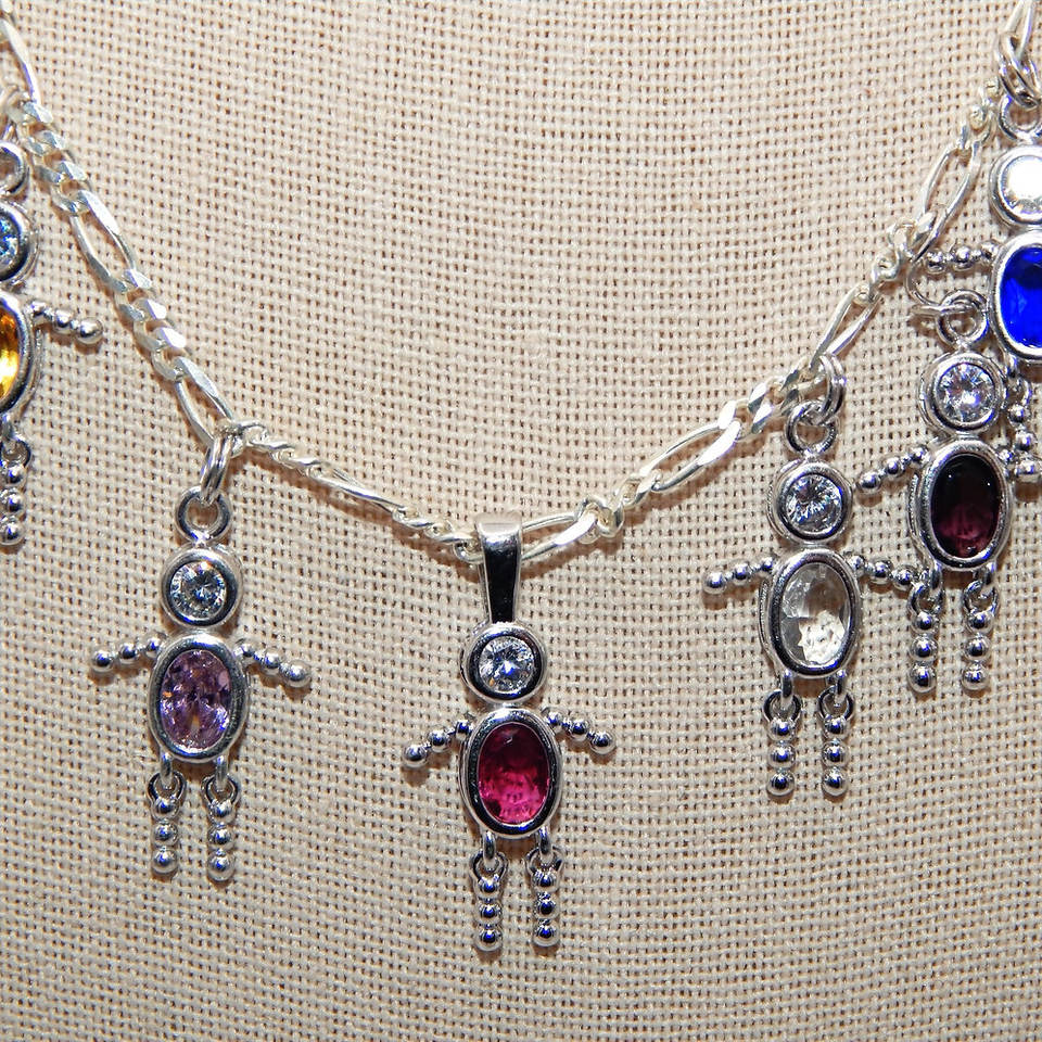 14K oro rosa. 925 in argento Sterling Figaro collana a catena con 6 Trendy portafortuna Vintage per bambini