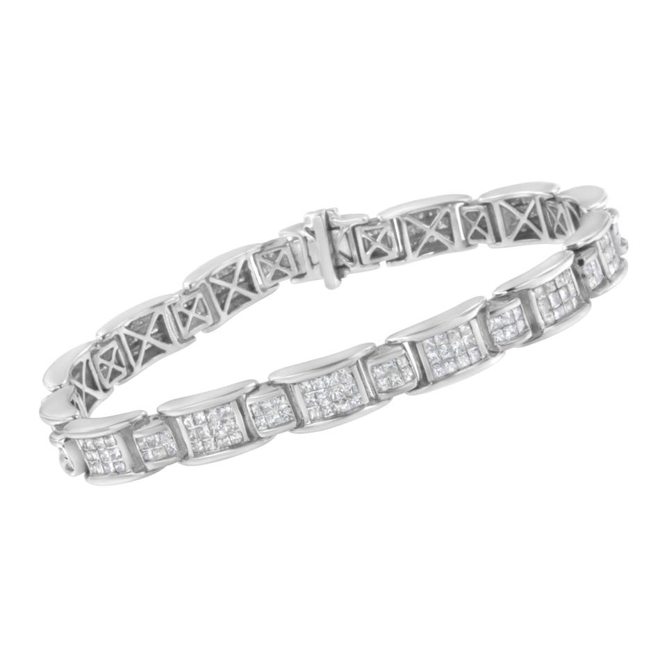 14K White Gold 5.0 Ctt Princess-Cut Diamond 7" Tennis Bracelet