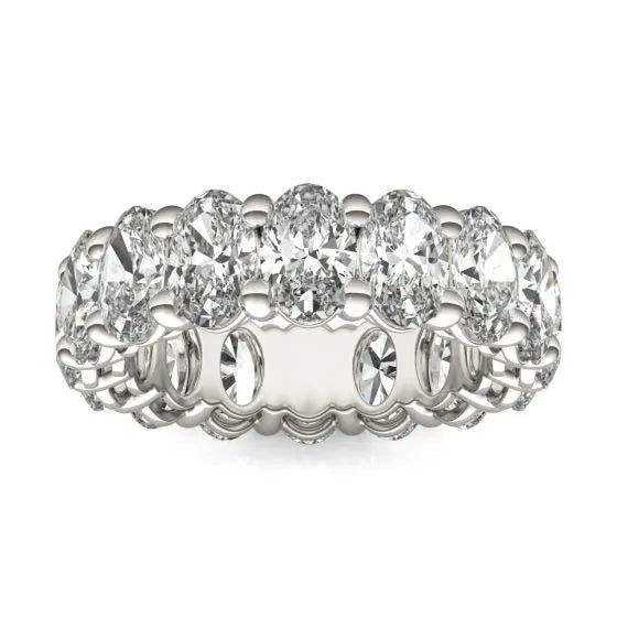 Anello Eternity da Donna in Oro Bianco 14K, Taglia 7, 5.6 CTW, Diamante Ovale Coltivato in Laboratorio (G-Vs) VS1+, Taglio Radiant, Motivo Geometrico Giallo