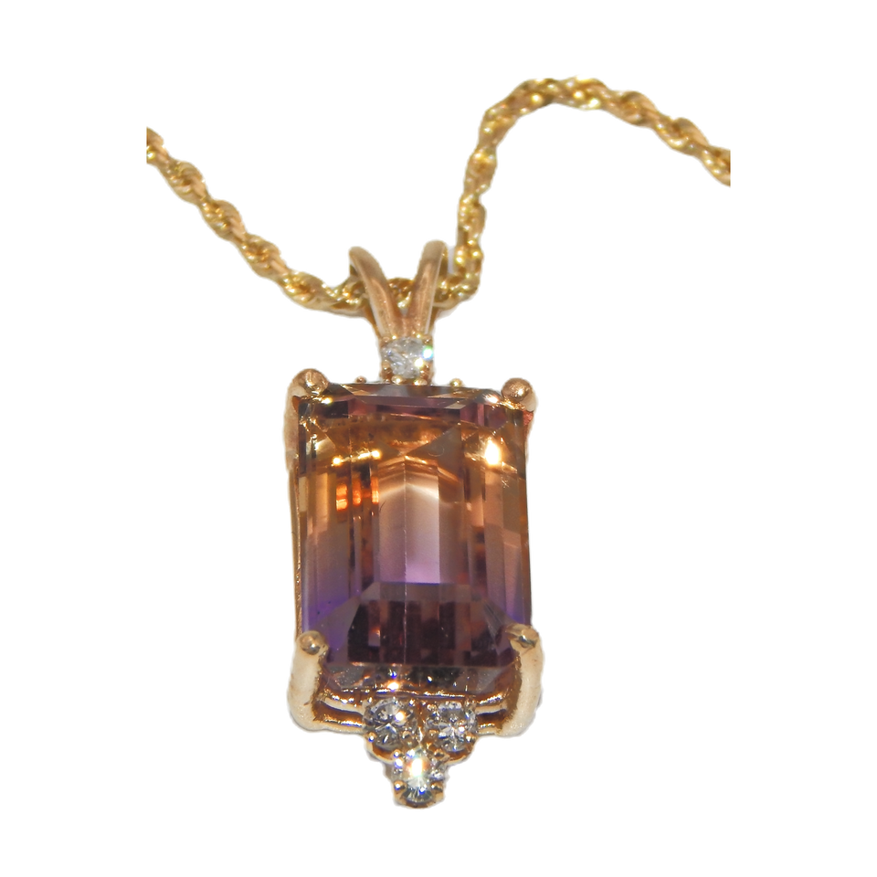 14K White Rose Platinum Gold Ametrine Diamond Pendant Rope Chain Necklace Rhodium Plated Geometric Wings Design Zircon Main
