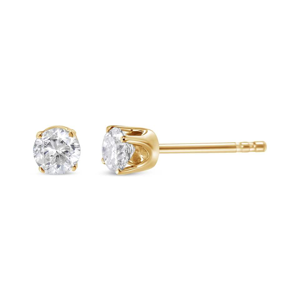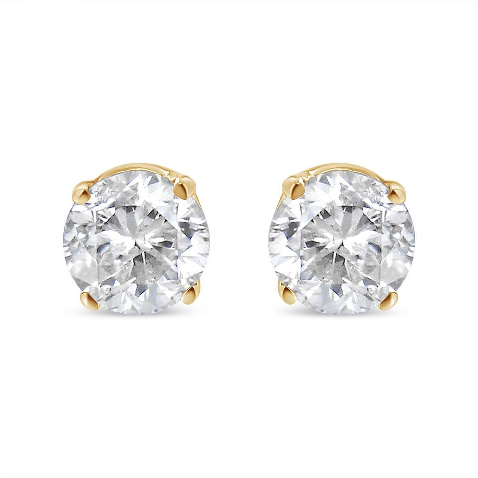 Orecchini a lobo solitari in oro giallo 14K con diamante taglio rotondo da 1/2 carato, colore O-P, purezza SI2-I1, orecchini a lobo alla moda