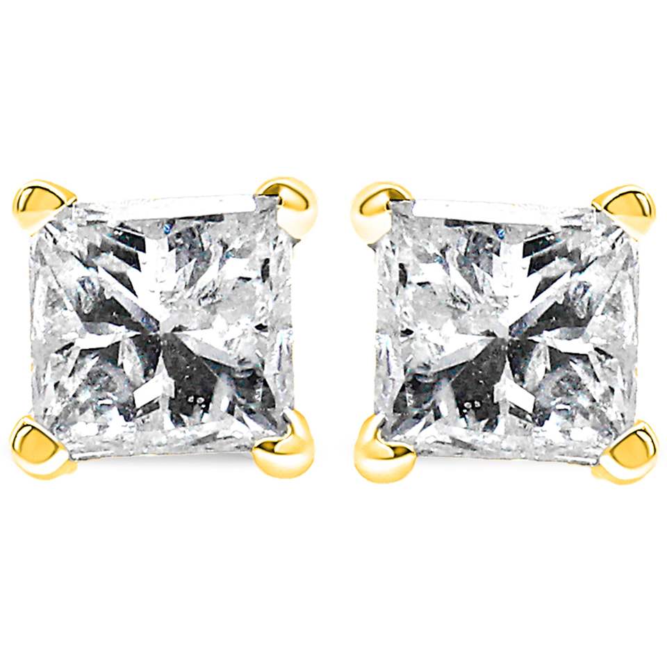 Orecchini a lobo classici a 4 griffe in oro giallo 14K con diamante incolore taglio Princess quadrato da 1/4 carati totali (colore H-I, purezza I1-I2)
