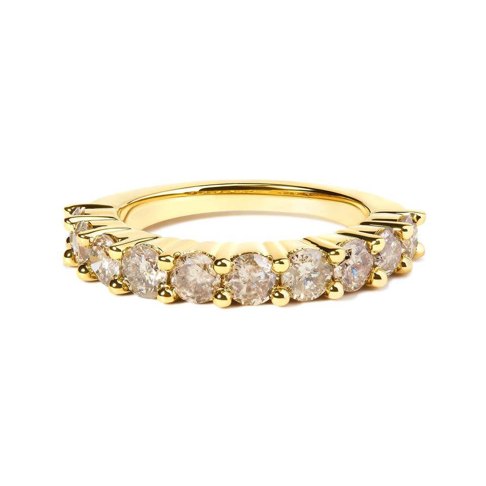 Anello a fascia per anniversario in argento sterling .925 placcato oro giallo 14K con 10 diamanti taglio brillante da 2.0 carati totali (colore J-K I1-)