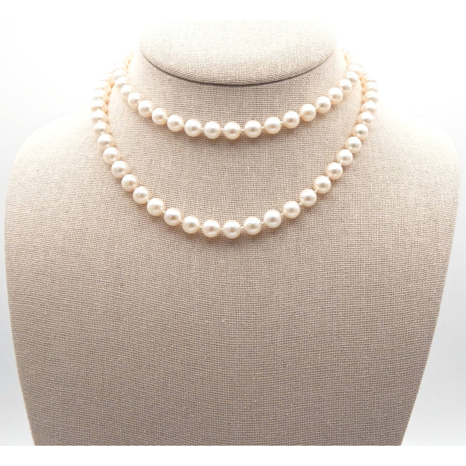 14k Gold & 7mm Akoya Japanese Cultured Pearl Necklace 28"
