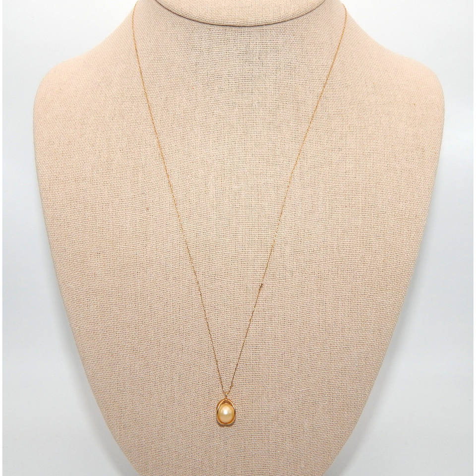 Catena in filigrana d'oro 14k e collana di perle in gabbia