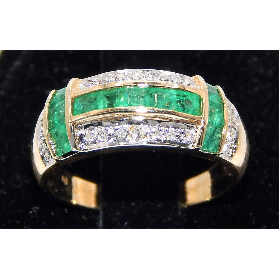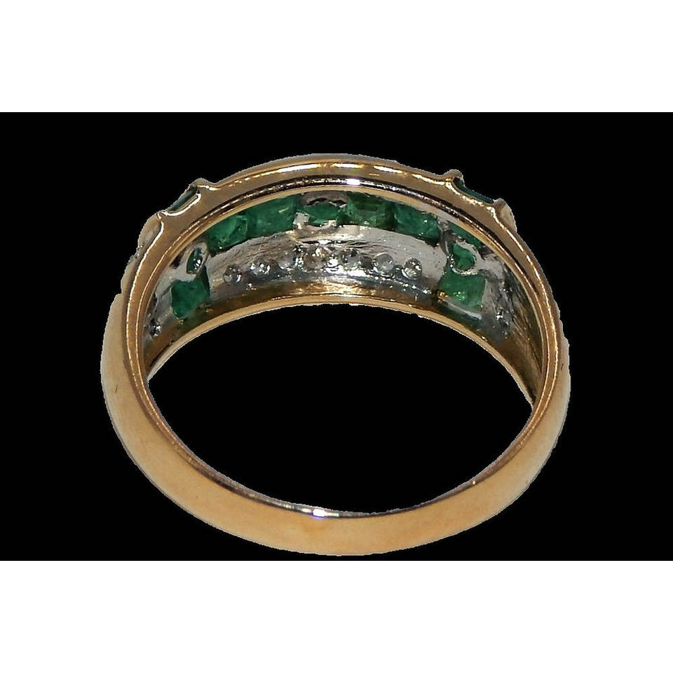 Anello in oro 14k con 22 diamanti e 12 smeraldi