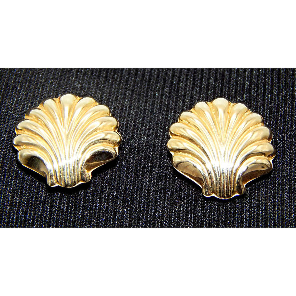 14k Rose Gold Scallop Shell Stud Earrings Trendy Huggie Post Design for Weddings and Engagements Gold Plated Ball Pattern