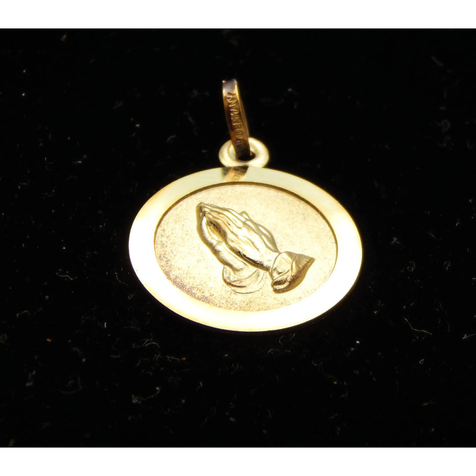 14k Solid Gold Medal. St. Francis of Assisi Praying Hands