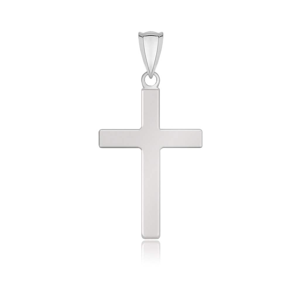 Ciondolo a Croce in Oro Bianco 14k dal Design Piatto, Pendenti e Charm alla Moda