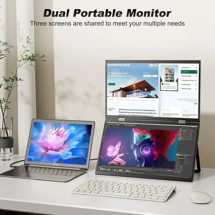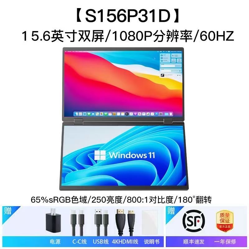 Monitor Portatile USB da 15,6 Pollici, Schermo IPS 1080P per Estensione Laptop, Configurazione Monitor Doppio/Triplo Pieghevole per Trading Diurno, Business