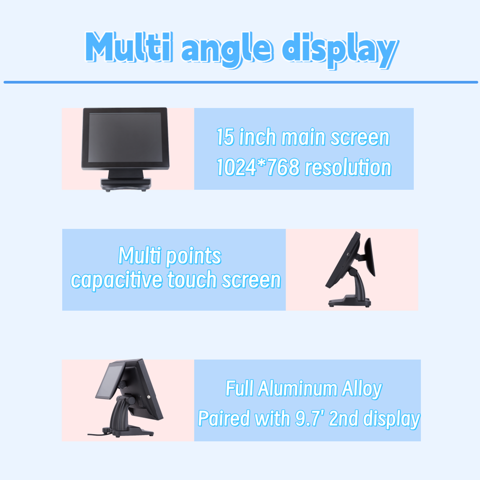 Sistema POS 15+9.7 Pollici, Registratore di Cassa Efficiente, Gestione Aziendale, Terminale POS Touch Screen Windows, Sistema POS All-in-One