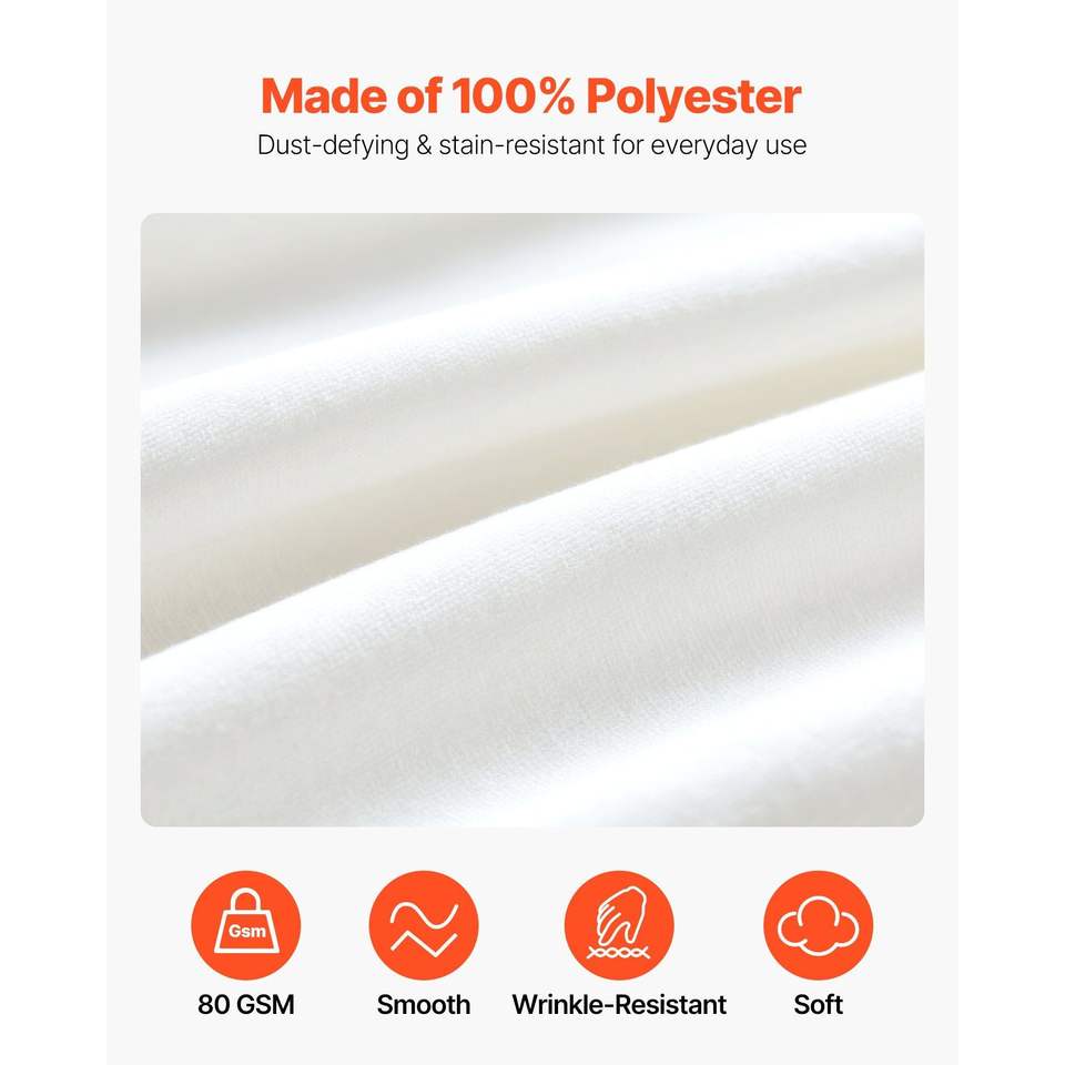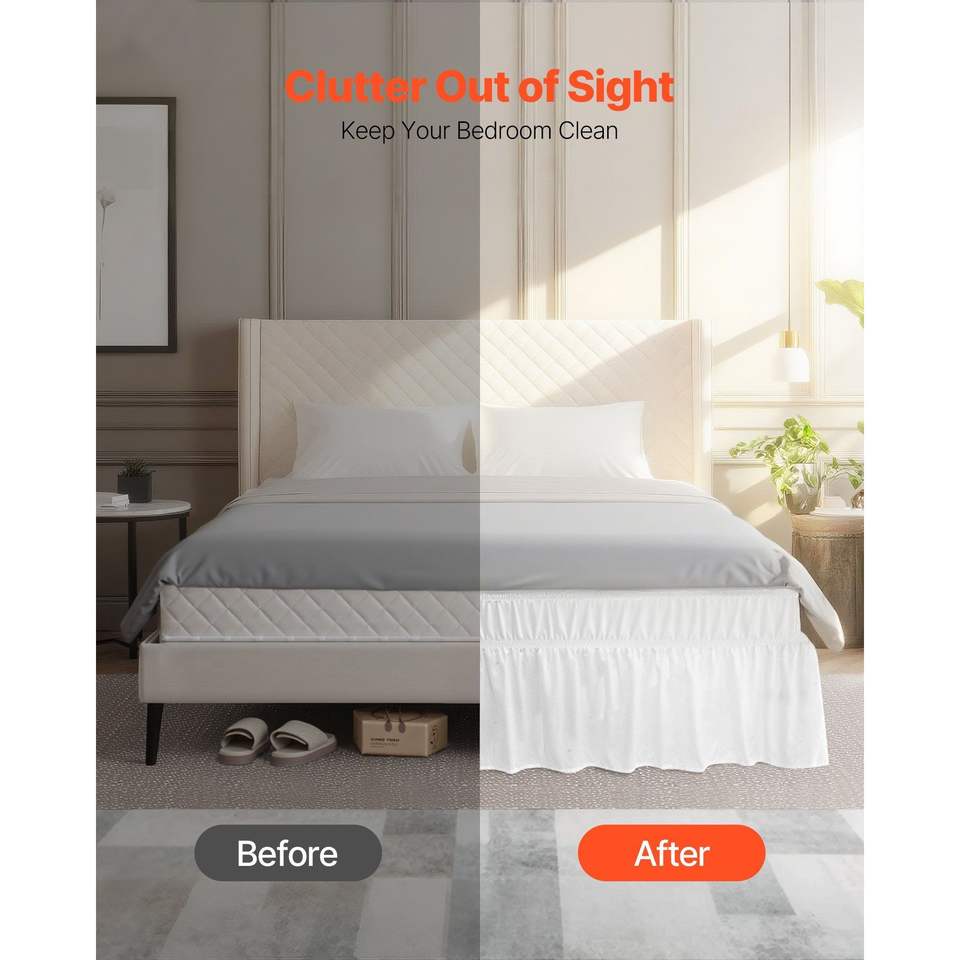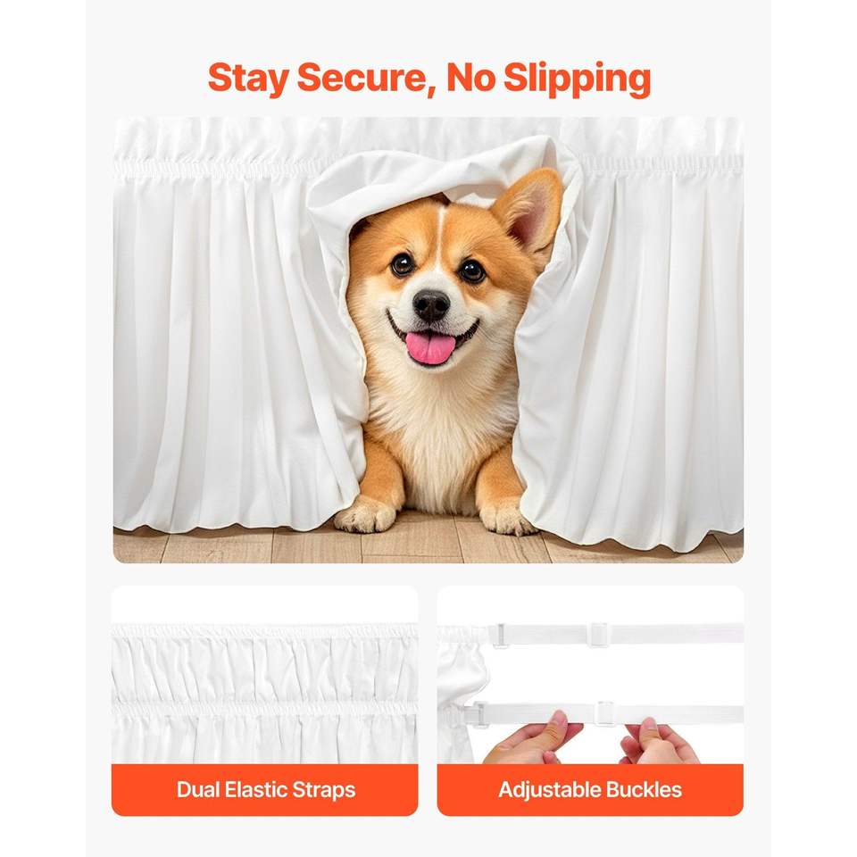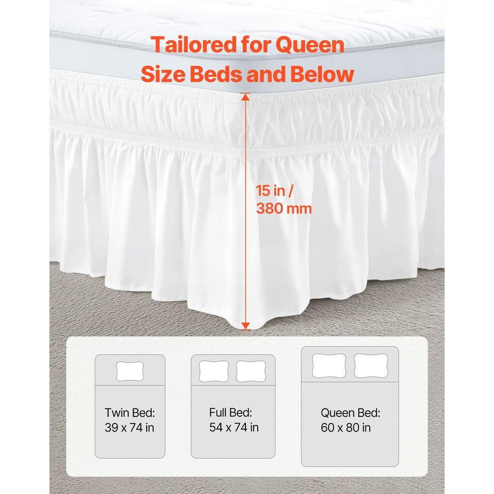 Gonna letto a balze bianca antipolvere per letto matrimoniale (15 pollici) con fascia elastica facile da montare, regolabile su tre lati