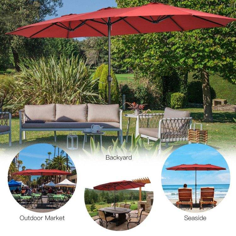 Ombrellone da Patio Doppio Lato da 4,5 Metri con Manovella e Base per Intrattenimento all'Aperto