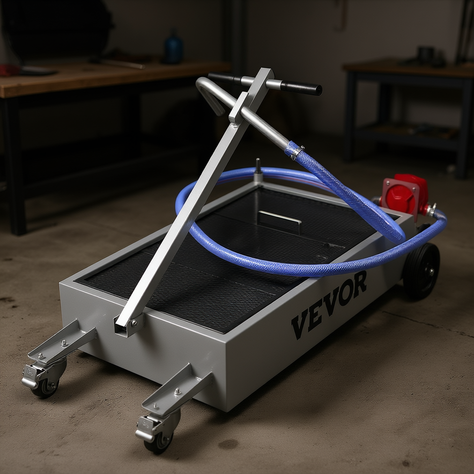 Serbatoio di scarico olio da 15 galloni con pompa manuale a basso profilo e ruote girevoli per auto, SUV, camion