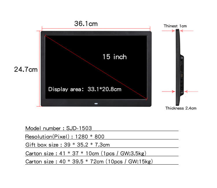 15 Inch Digital Picture Frame will be packed by standard carton.