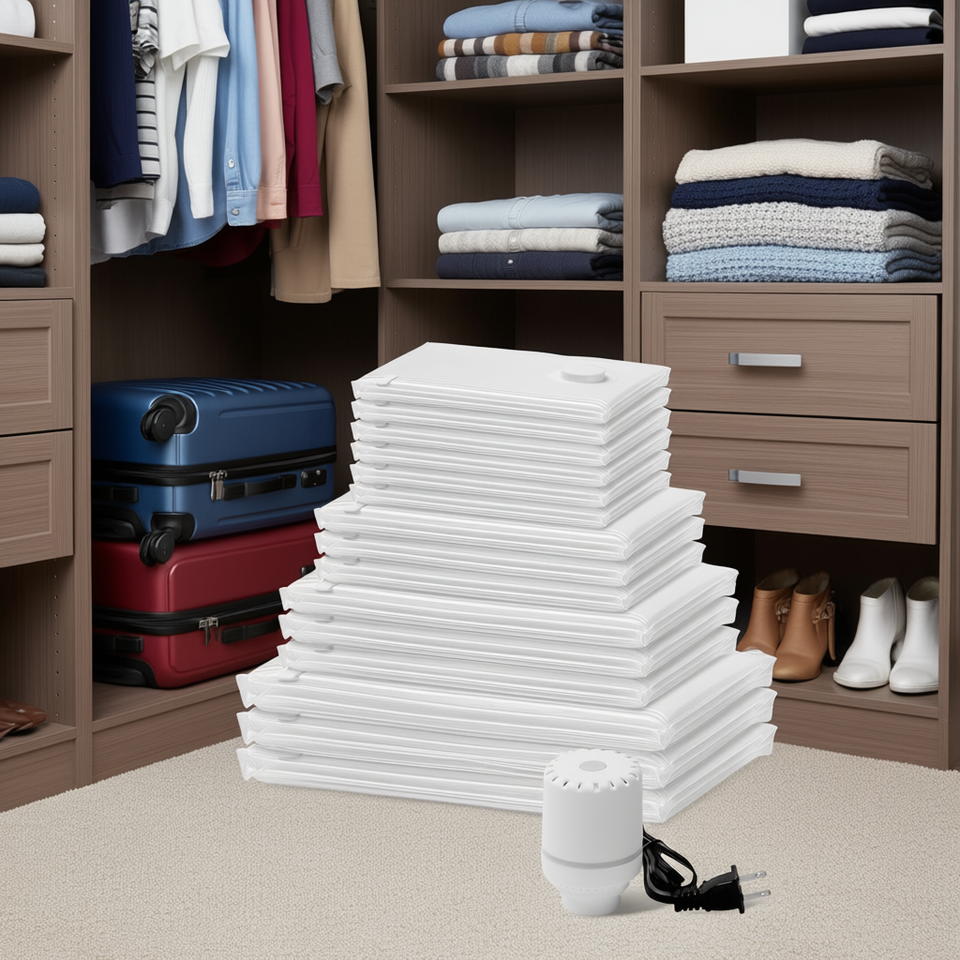 Sacchetti Sottovuoto 100x70cm, Confezione da 15, Salvaspazio a Compressione per Piumoni, Vestiti, Organizzazione Camera da Letto