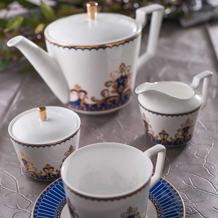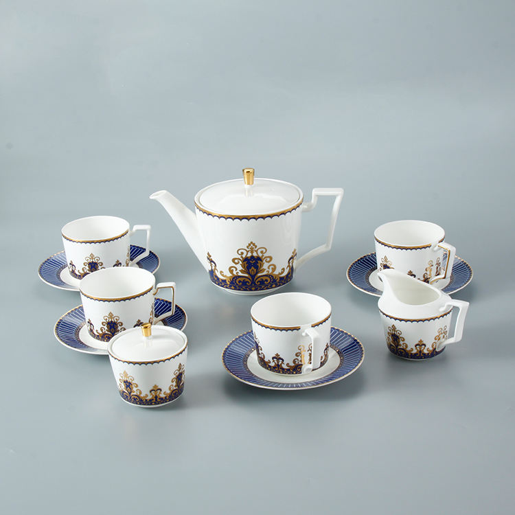15 Pieces Western Porcelain Coffee Teacup and Saucer Plate Set Elegant Blue White Bone China Tea Cup and Saucer Sets Wholesale