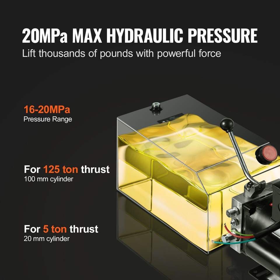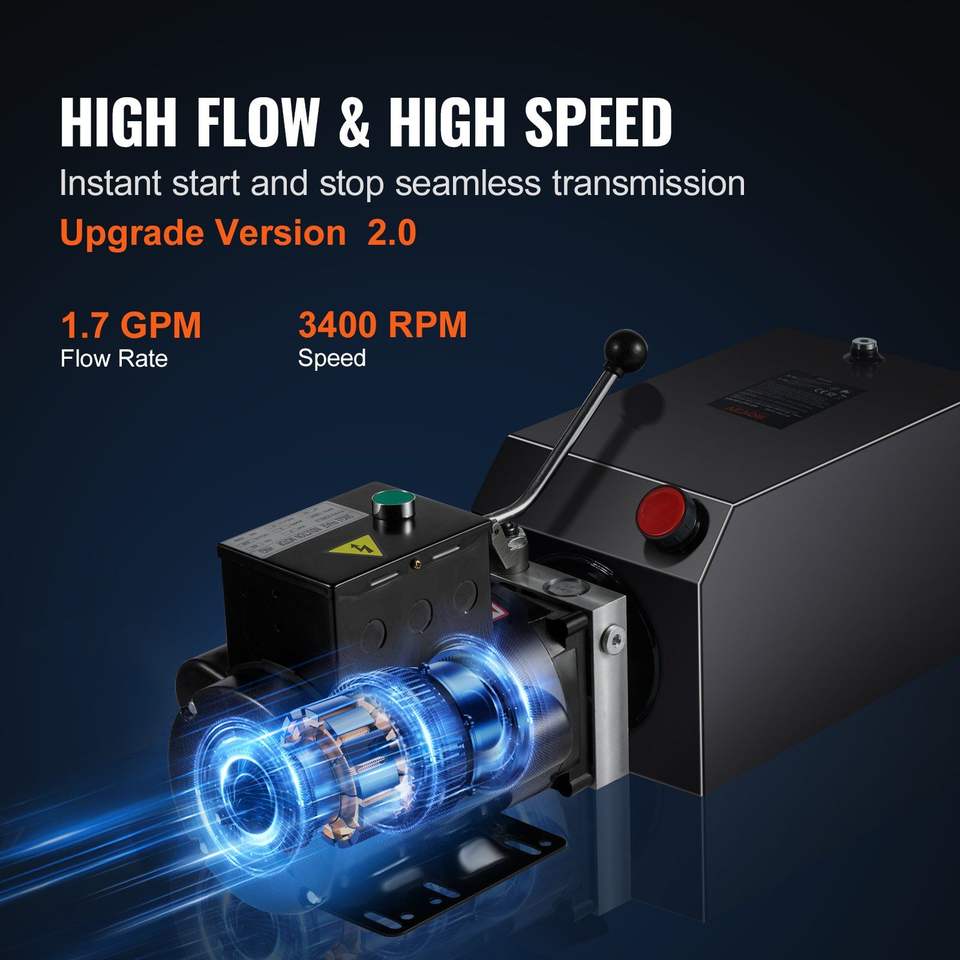 Centralina Idraulica da 15 Quarti per Rimorchio Ribaltabile a Semplice Effetto, Pressione Massima 3200 PSI, Portata 1.7 GPM, Sollevatore per Edilizia