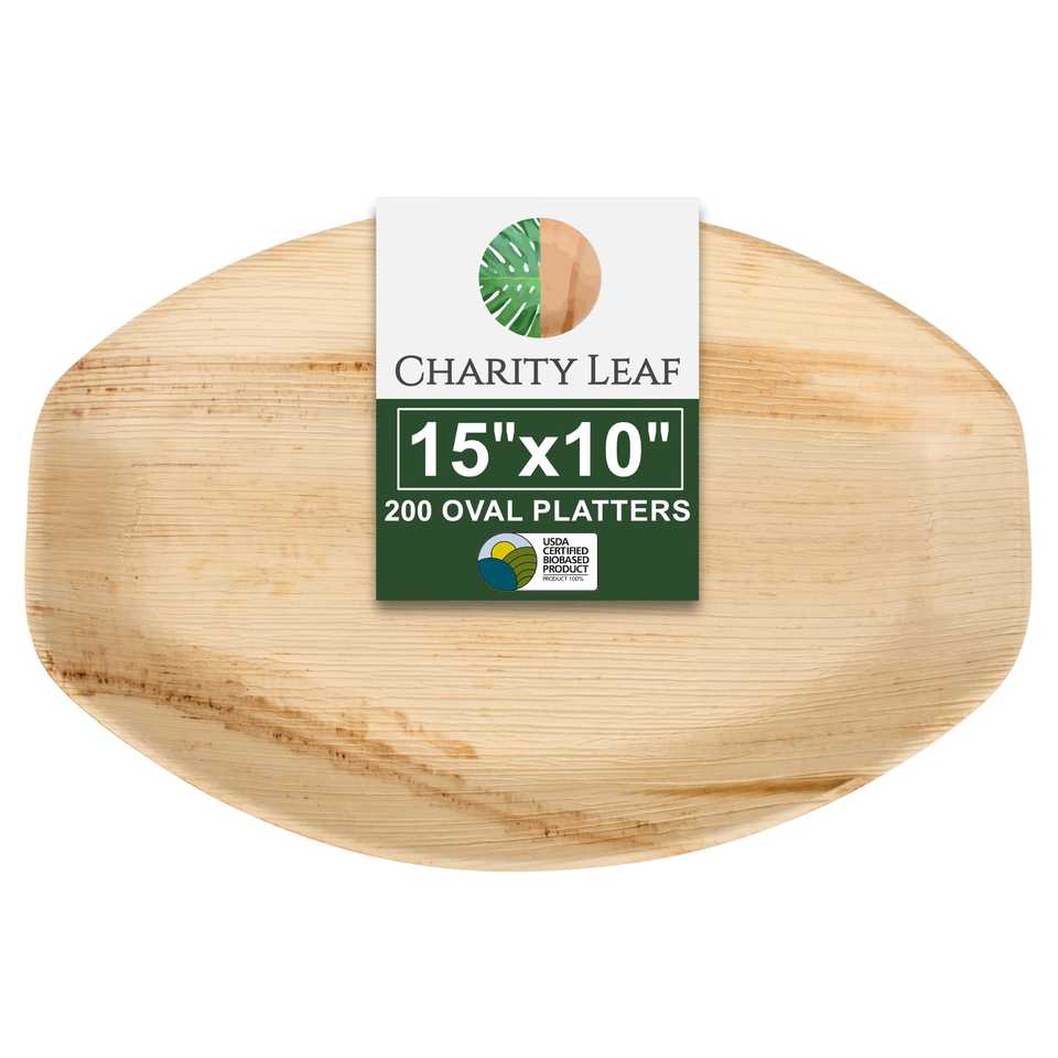 Vassoio Ovale Monouso in Foglia di Palma Naturale 15 x 10 Pollici, Stoviglie Ecologiche