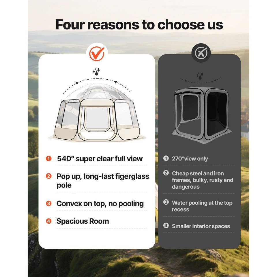 Tenda a Bolla Pop-up 15 x 13,8 piedi, Resistente ai Raggi UV, Impermeabile, Trasparente, per Campeggio, Giardino, Igloo Dome