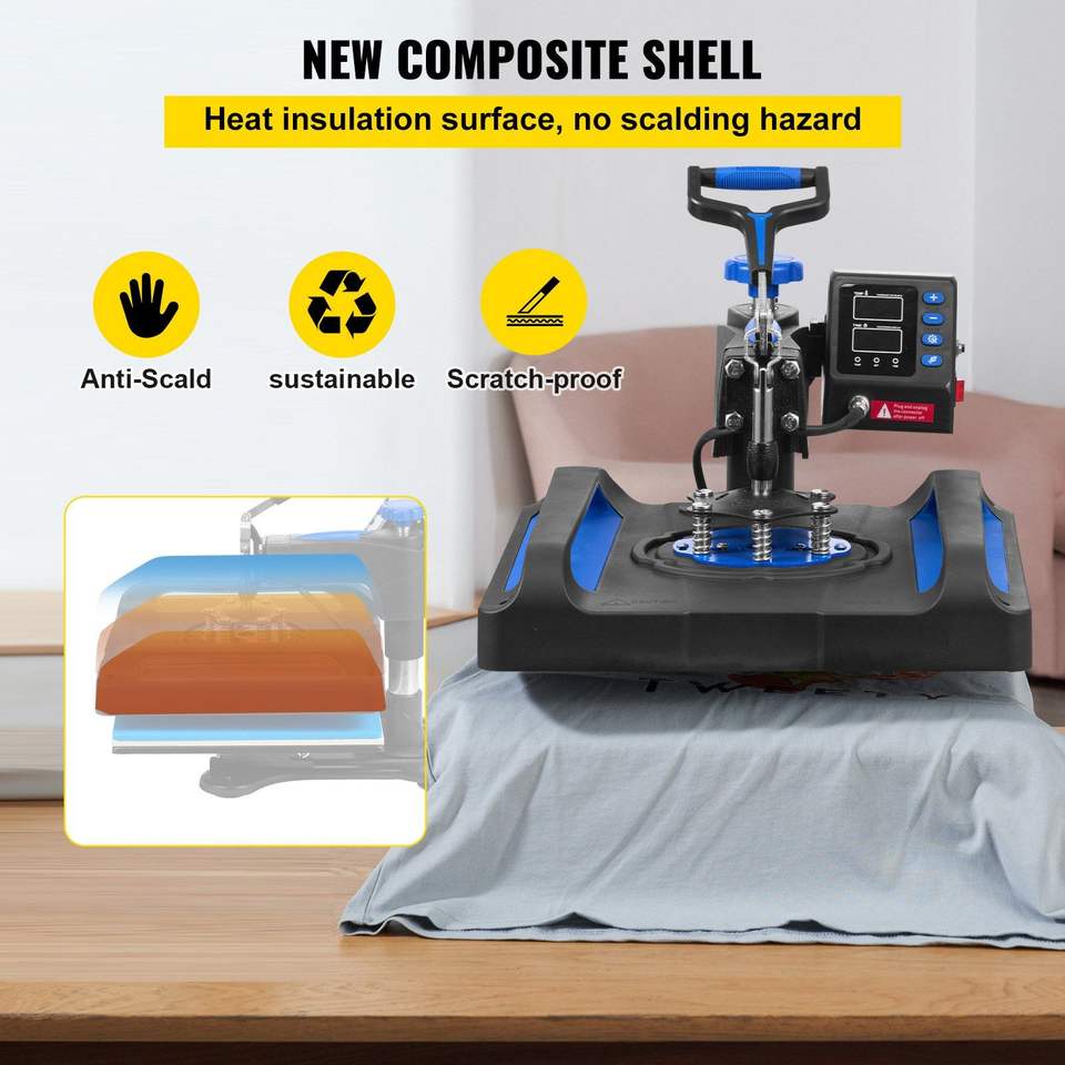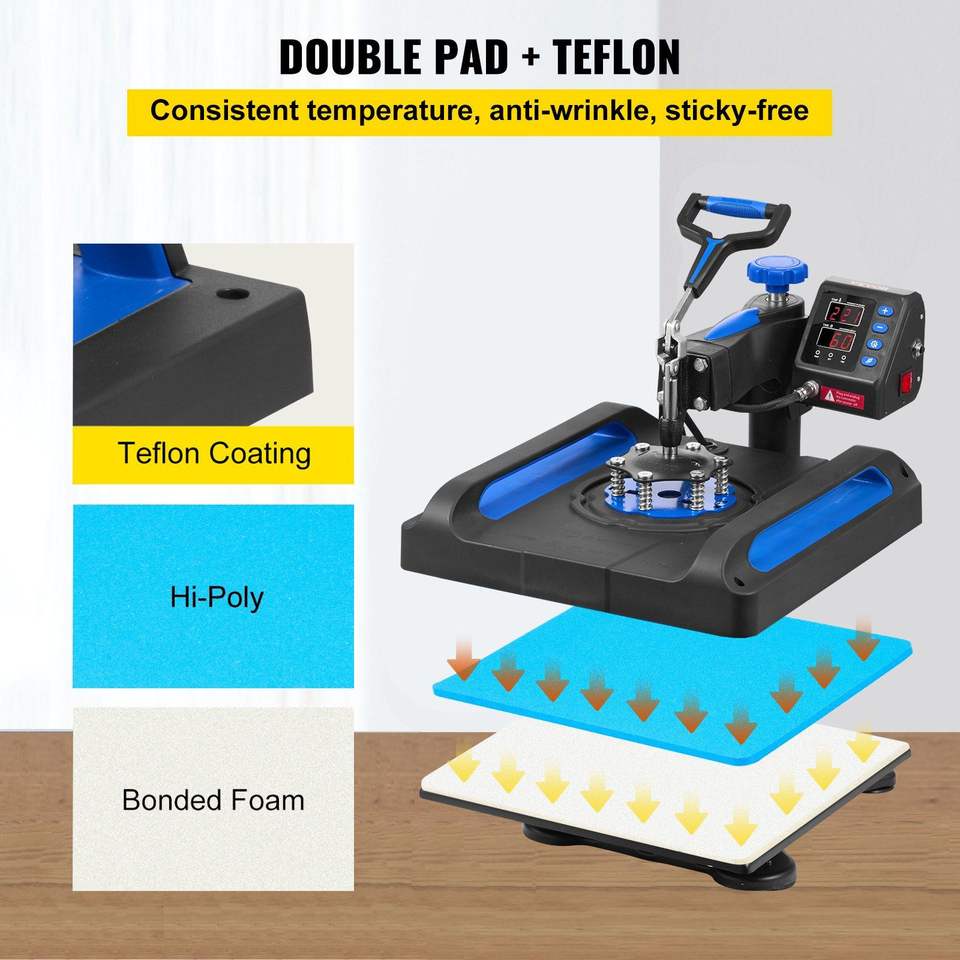 Pressa a Caldo Digitale 15x15 a Riscaldamento Rapido con Apertura a 360° per T-shirt e Trasferimento Vinile, con Funzioni Anti-Scottatura