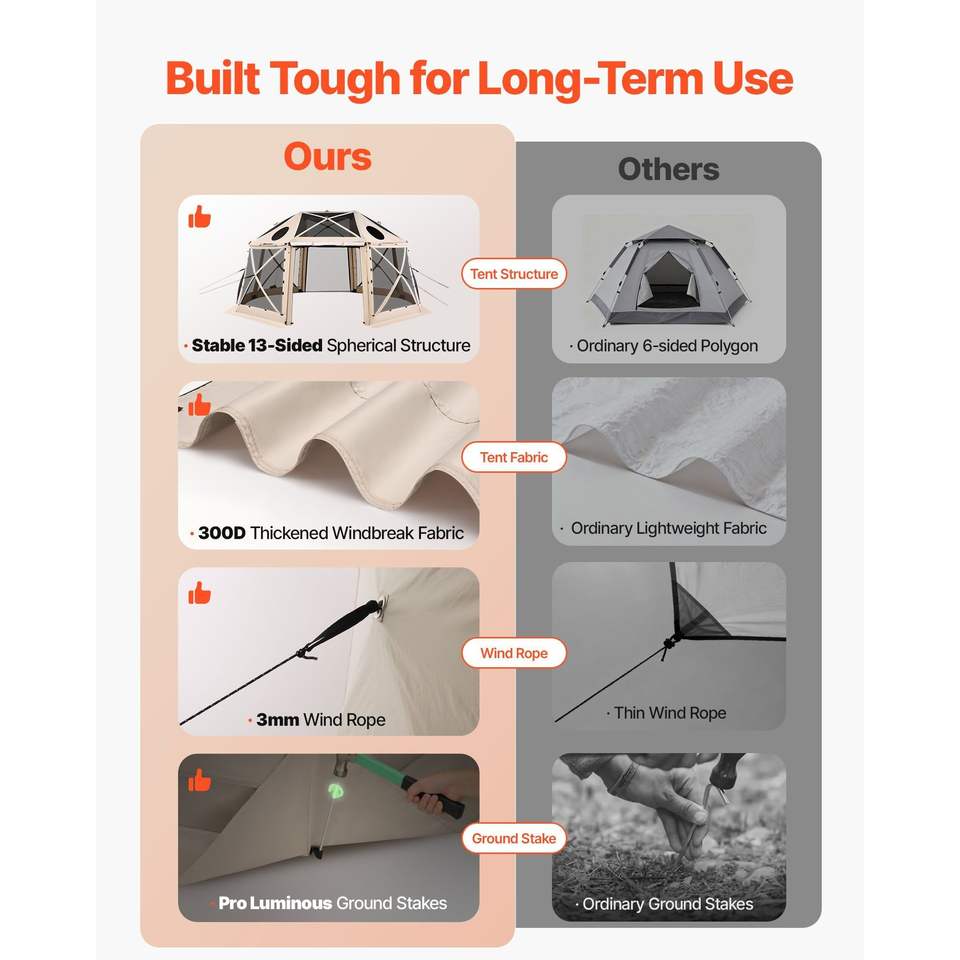 Gazebo Pop-Up 15 x 15 piedi con Tenda a Schermo e Tetto Rimovibile, Montaggio Rapido, Baldacchino Sferico a 13 Lati per Campeggio, Borsa per il Trasporto Inclusa