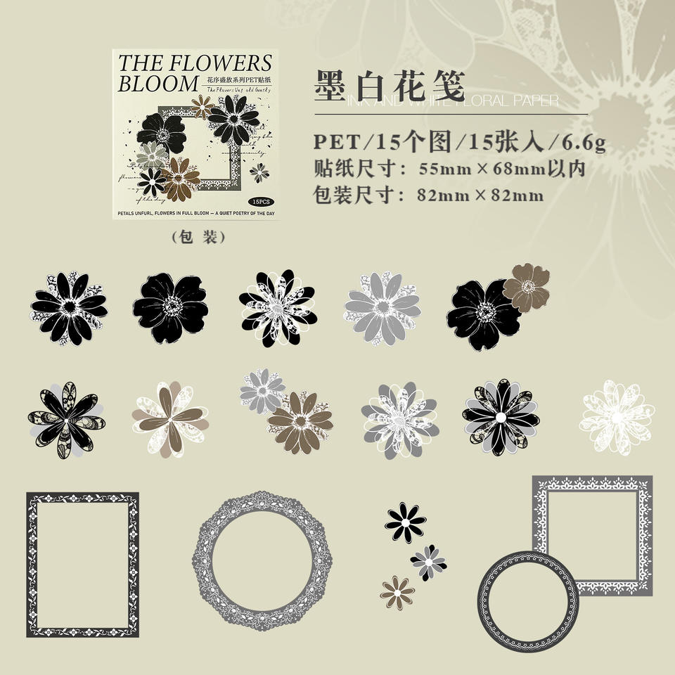 15 adesivi per confezione Serie Infiorescenza Fiorita Collage Floreale Retrò Adesivi Decorativi Fai-da-Te per Diari Artigianali