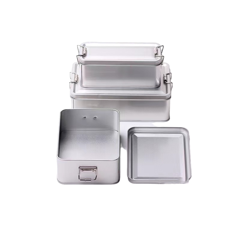 150*60*65mm Wholesale RTS Silver Cake Biscuit Cookie Tiramisu Foodgrade Tin Box Custom Logo Tin Box with Lock for Food Packaging