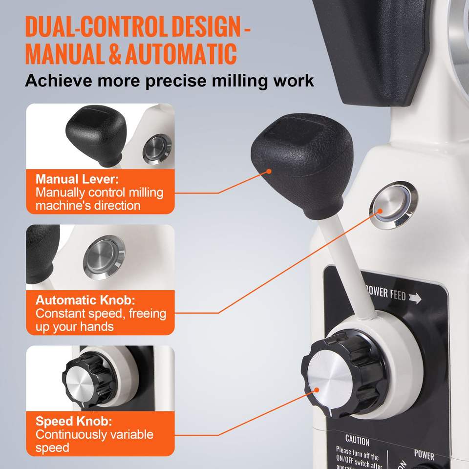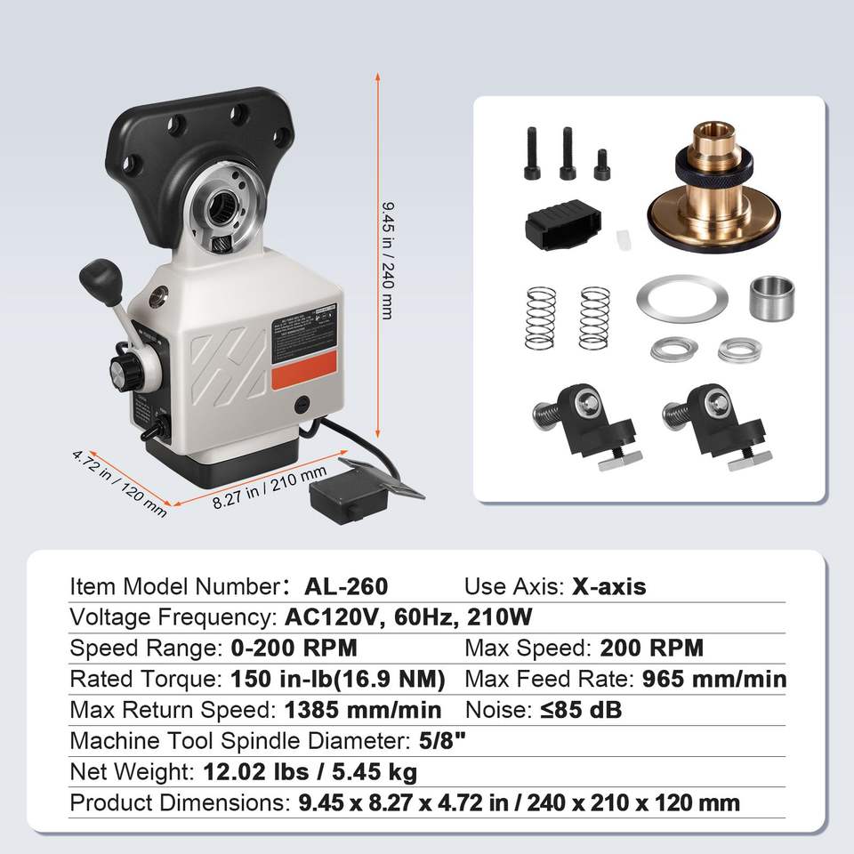 Fresatrice con Alimentazione Elettrica Asse X, 150 In-lb di Coppia, Velocità di Rotazione Regolabile 0-200 RPM, Alimentazione 120V, Tavola Rotante per Fresatura Manuale