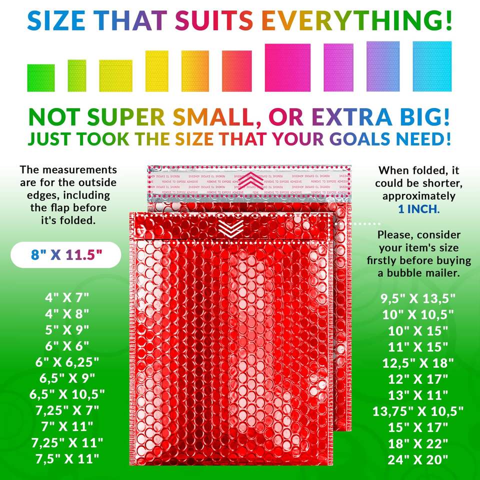 Confezione 150 bollettini a bolle di colore rosso metallizzato da 8X11.5 pollici chiusura autosegalata da imballaggio buste impermeabili in metallo brillante per