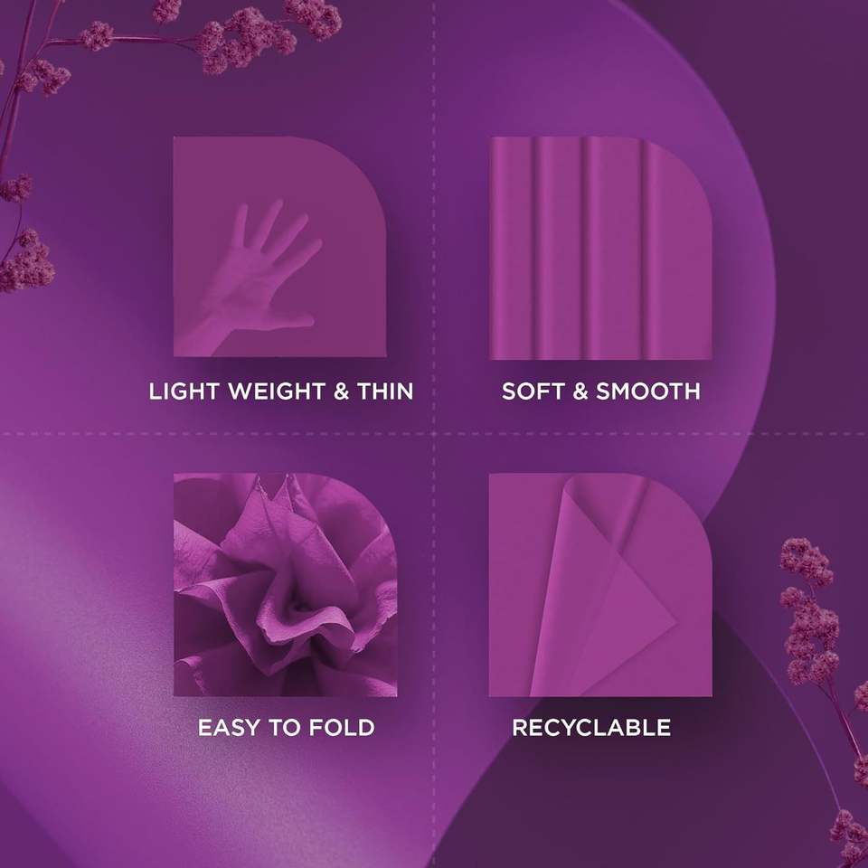 150 Fogli di Carta Velina Viola 14x20 Pollici, Confezione per Regali, Bouquet, Matrimoni, Decorazioni per Feste