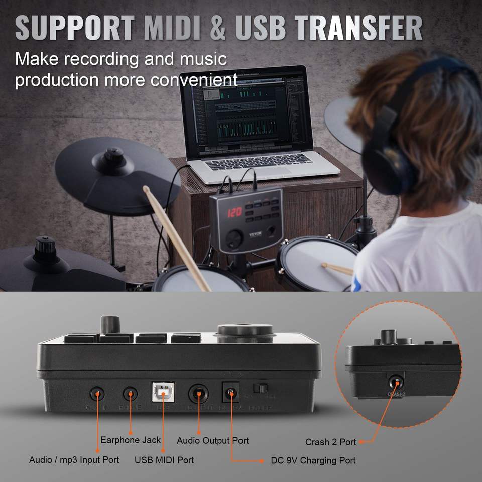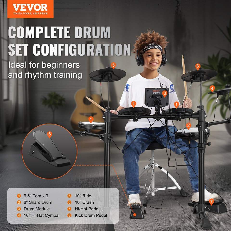 Set di Batteria Elettronica con 150 Suoni, 15 Kit e 8 Rullanti Silenziosi in Mesh, Supporto USB MIDI, Kit Batteria Elettronica con 150 Suoni