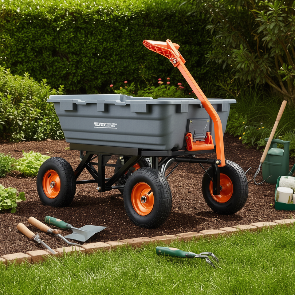 Garden Dump Cart 13 Inch Tires Steel Frame Four-Wheel Platform Convertible Handle Easy Assembly 2 In 1