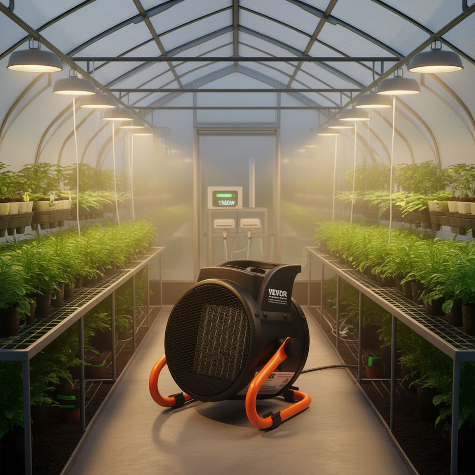 Termoventilatore Elettrico Portatile PTC da 1500W per Serra, Tenda da Coltivazione, Stanza per Fiori, Posto di Lavoro, Riscaldamento Rapido, 3 Impostazioni di Velocità