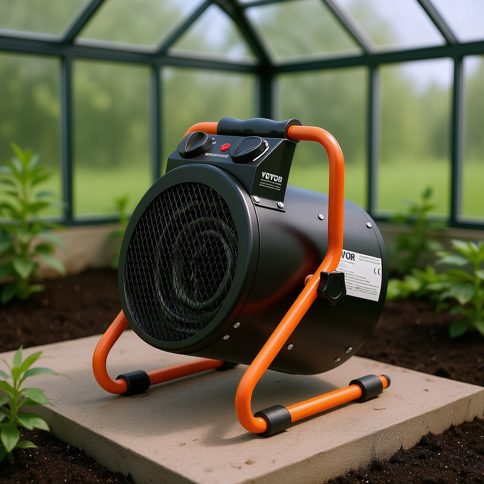 Termoventilatore Elettrico Portatile 1500W con Controllo Meccanico a 2 Velocità per Riscaldamento Serra, Fino a 76 m², Impermeabile IP24