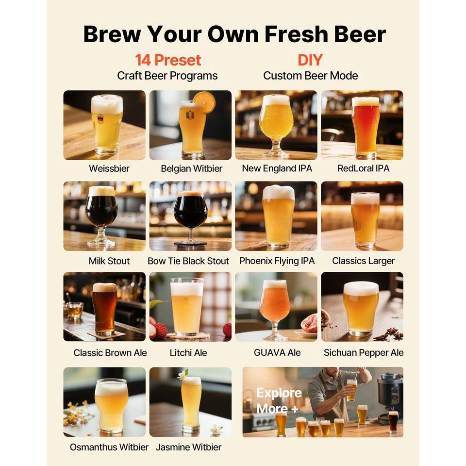 Macchina Elettrica per Birra Fatta in Casa da 1500W, Dispositivo Automatico Tutto-in-Uno da 3,43 Galloni per Ammostamento e Ebollizione