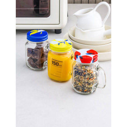 Bottiglia di vetro da 150ml con tappi in acciaio e manico per la conservazione