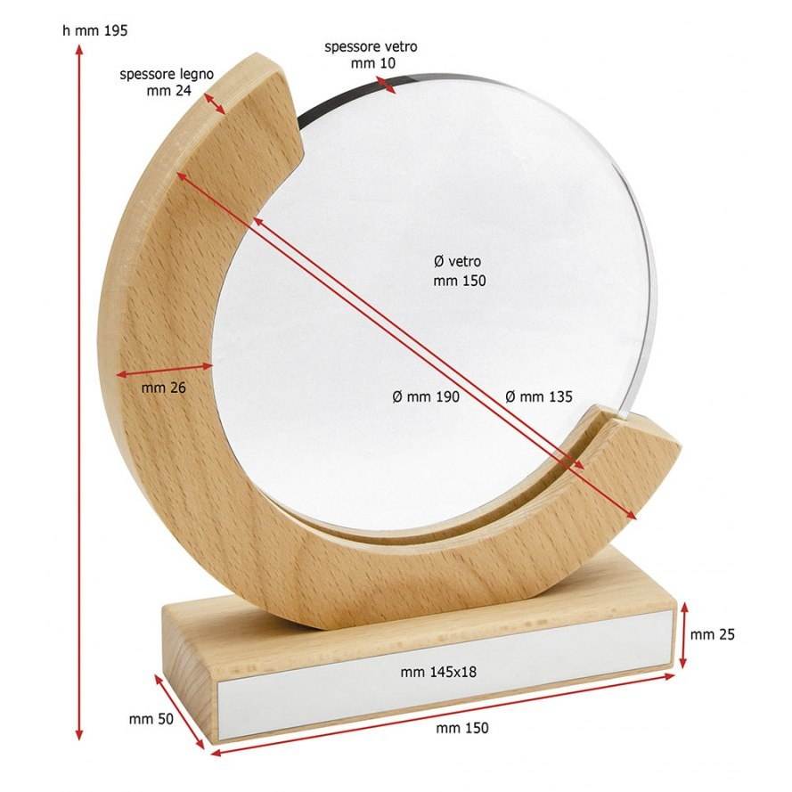 150mm Diameter Glass Trophy with Wood Support Elegant Glass Frames Product