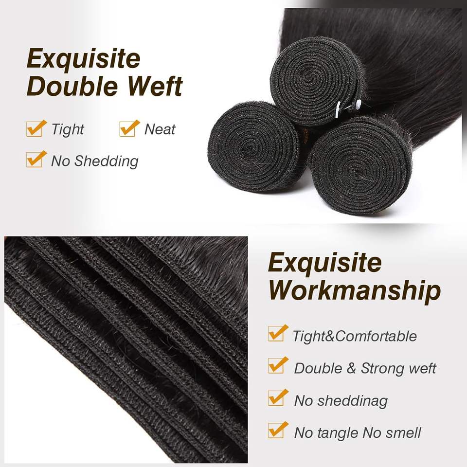 Estensioni di Capelli Umani Vergini Vietnamiti 15A, Onda Naturale, 100% Non Trattati, Nero Naturale, Trama Doppia a Macchina, Fasci di Capelli Intrecciati