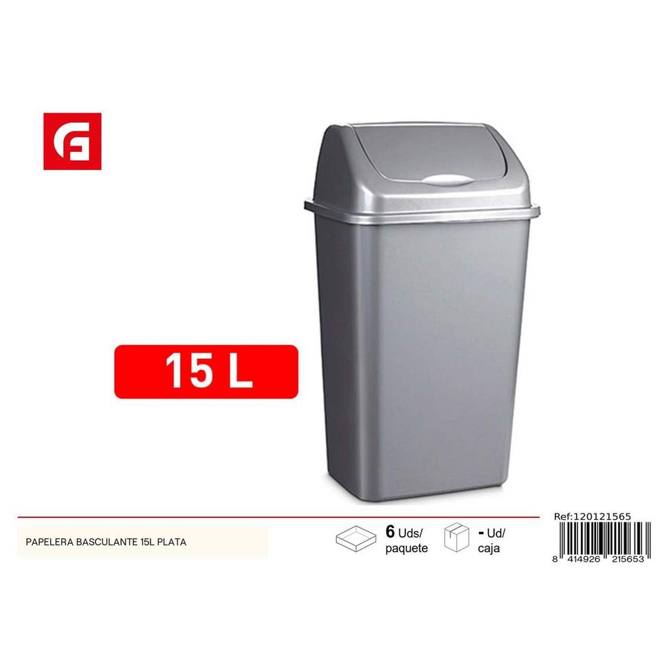 Bidone della Spazzatura in Plastica da 15L con Pedale Argento per Ufficio e Cucina