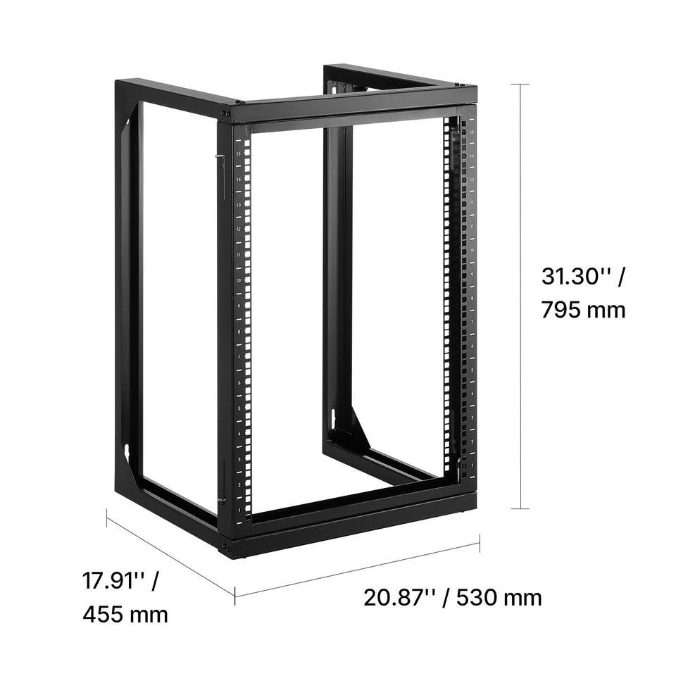 Armadio Rack Server a Parete 15U, Capacità di Carico 68 kg, Telaio Aperto con Sportello Girevole a 180 Gradi, Armadietti di Rete in Acciaio al Carbonio
